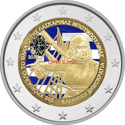 GRECE, 2 € commémorative 2025 "Bouboulina" COLORISEE.