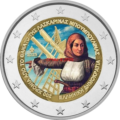 GRECE, 2 € commémorative 2025 "Bouboulina" COLORISEE, type II (livrée sous capsule).