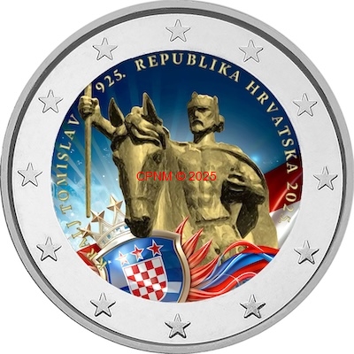 CROATIE, 2 € commémorative 2025 "Royaume de Tomislav" COLORISEE, type III (livrée sous c...