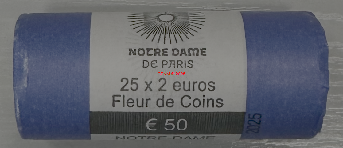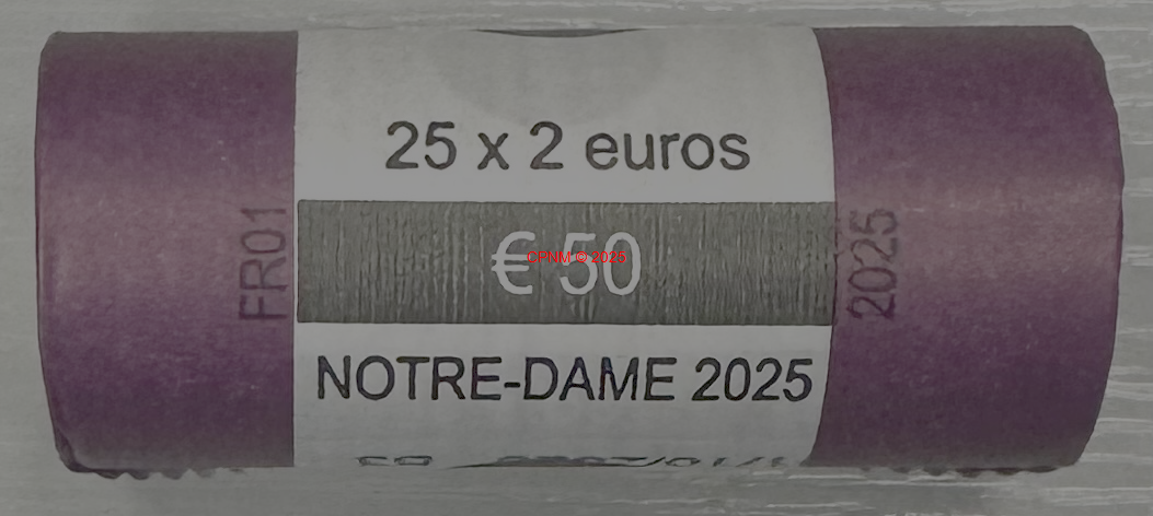FRANCE, 2 € commémorative 2025 "Notre-Dame de Paris", rouleau scellé de 25 pièces.