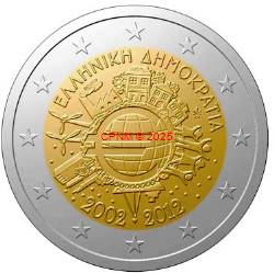 GRECE, pièce de 2 euros commémorative 2012 célébrant les 10 ans de l'euro.
