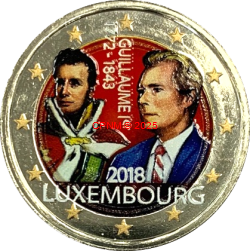 LUXEMBOURG, 2 € commémorative 2018 "Grand-Duc Guillaume Ier", version COLORISEE, type II (livrée sous capsule)