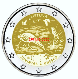 LITUANIE, 2 € commémorative 2021, "Biosphère de ZUVINTAS, patrimoine mondial de l'UNESCO".