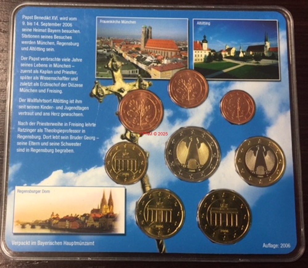 ALLEMAGNE, rare coffret BU "2006" consacré à la visite du Pape BENOIT XVI en Bavière. Tirage très limité (2.006 ex.) !!!