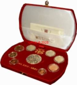 VATICAN, coffret BE 2004. Il comprend les 8 pièces officielles (scellées sous capsules en matière plastique) + une médailles commémorative en argent massif.