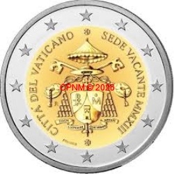 VATICAN, 2 € commémorative 2013, "Sede Vacante", pièce neuve sans étui provenant du stock de seulement 15 000 pièces traditionnellement distribuées aux employés du VATICAN.