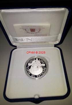 VATICAN, la magnifique pièce de 5 euros 2014 en argent, commémorant la 47ème Journée Mondiale de la Paix, avec à l'avers l'effigie du Pape FRANCOIS, et au revers le symbole de la fraternité. Diamètre 32mm, 18g d'argent 925°/°°. Tirage seulement 5999 exemplaires. Pièce en frappe Belle Epreuve, livrée en coffret original avec étui certificat.
