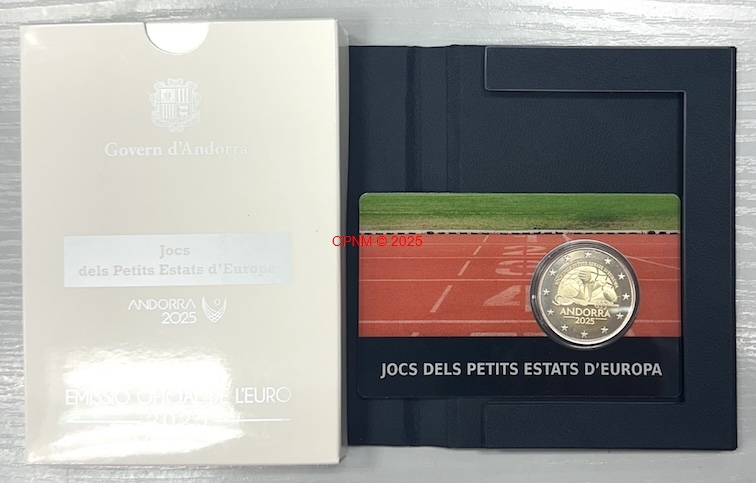 ANDORRE, 2 € commémorative 2025 "Jeux des Petits états d'Europe", frappe BE (Belle Epreuve...