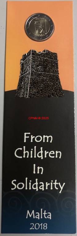 MALTE, la deuxième pièce de 2 euros 2018, Héritage culturel, From Children in Solidarity, avec différent du graveur, en coincard.