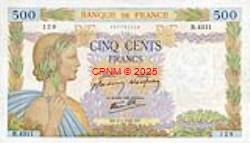 FRANCE : 500 F "La Paix", type 1939 du 02/01/1942, superbe spécimen de ce magnifique billet, dans un état de conservation EXCEPTIONNEL : aucun pli, pas d'épinglage et très frais. RARE ainsi !!!