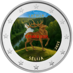 LETTONIE, 2 € commémorative 2025 "Sélija" COLORISEE, type II (livrée sous capsule).
