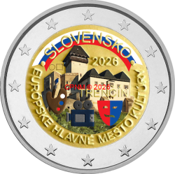 SLOVAQUIE, 2 € commémorative 2026 "Trencin", version COLORISEE, type III (livrée sous capsule).