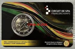 BELGIQUE, 2 € commémorative "Circuit de Spa Francorchamps", coin card BU avec légende jaune et en français (en bas, à gauche).