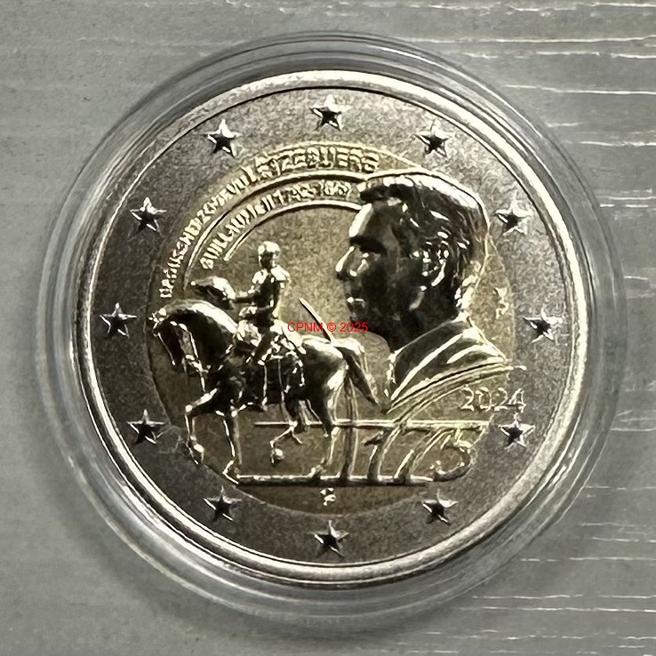 LUXEMBOURG, 2 € commémorative 2024 "Grand Duc Guillaume II", rare version "polissage inver...