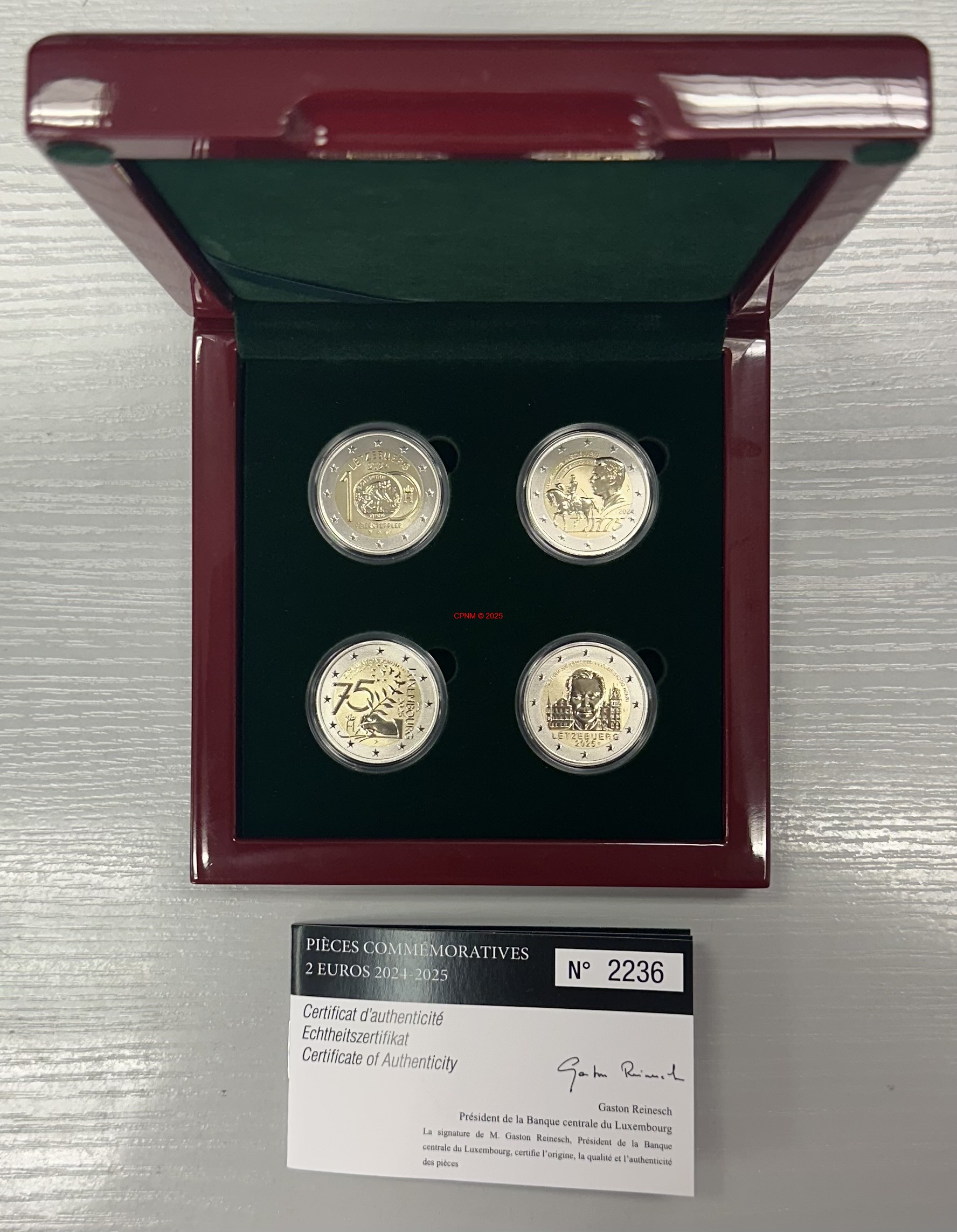 LUXEMBOURG, coffret BE renfermant les deux 2 € commémoratives émises en 2024 et 2025 dans ...
