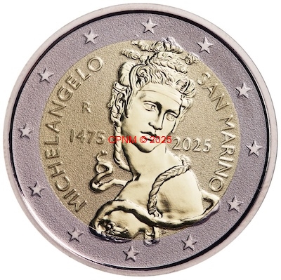 SAINT-MARIN, 2 € commémorative 2025 "550e anniversaire de la naissance de Michel-Ange", dans son coffret BU d'origne.